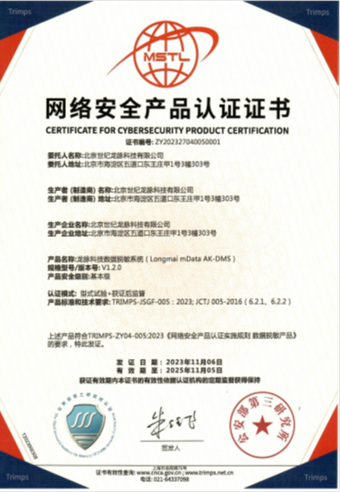 近日,龍脈科技數據脫敏系統(Longmai mData AK-DMS)成功通過了公安部計算機信息系統安全產品質量監督...